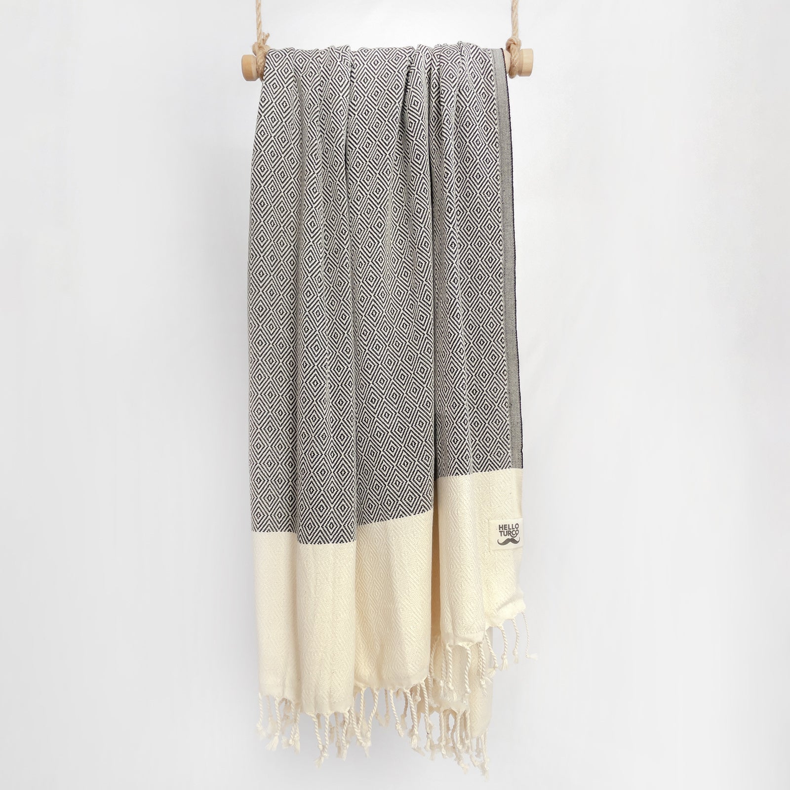 Otto Black Turkish Towel – Jacquard-Woven, Organic, Mindfully Made